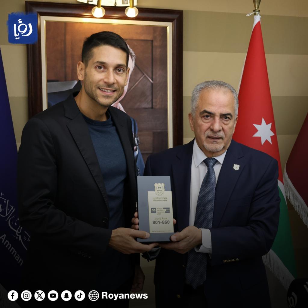 الرئيس التنفيذي لمجموعة رؤيا الإعلامية المهندس فارس الصايغ والأستاذ الدكتور ساري حمدان، رئيس جامعة عمان الأهلية
