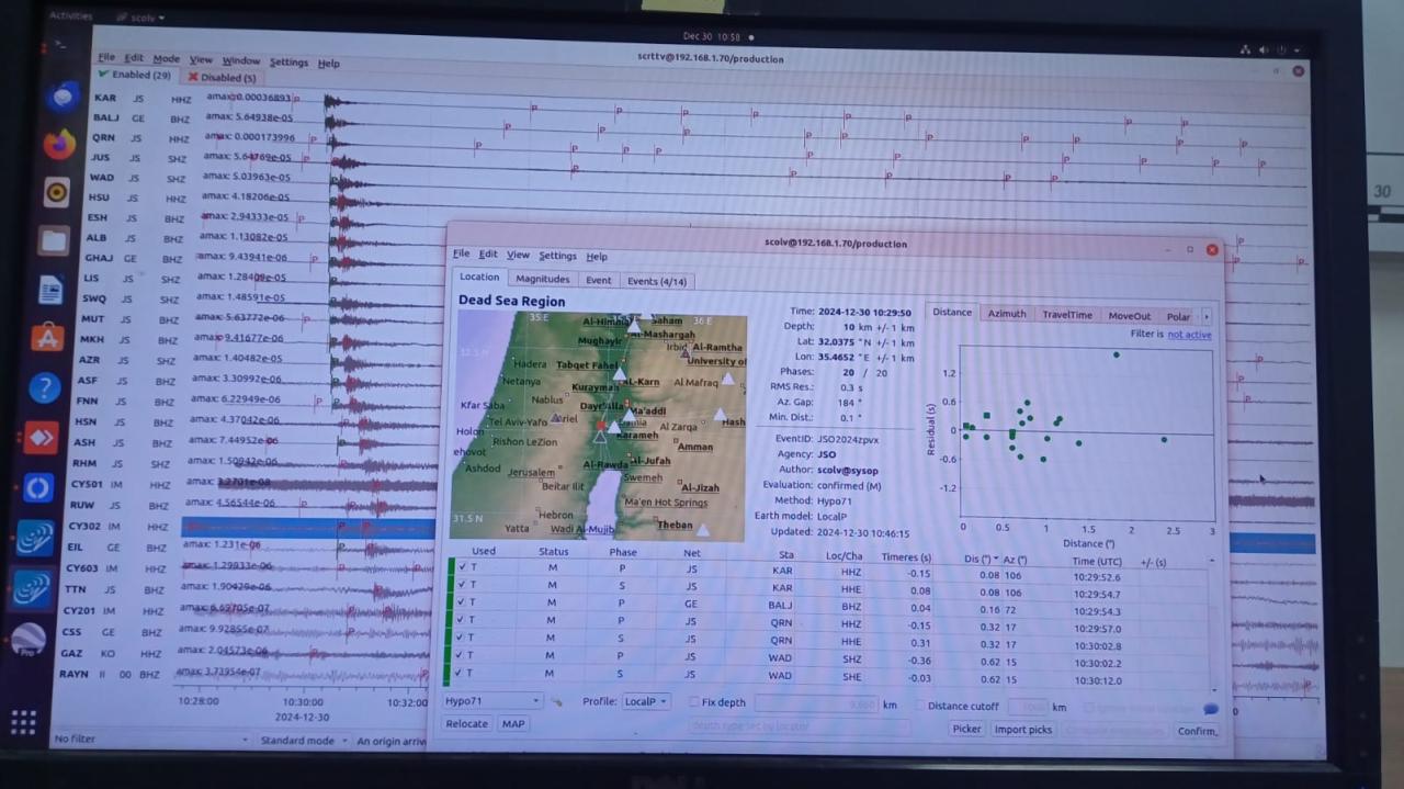 مرصد الزلازل الأردني يسجل زلزالا بقوة 3.3 درجة شمال غرب البحر الميت - صور