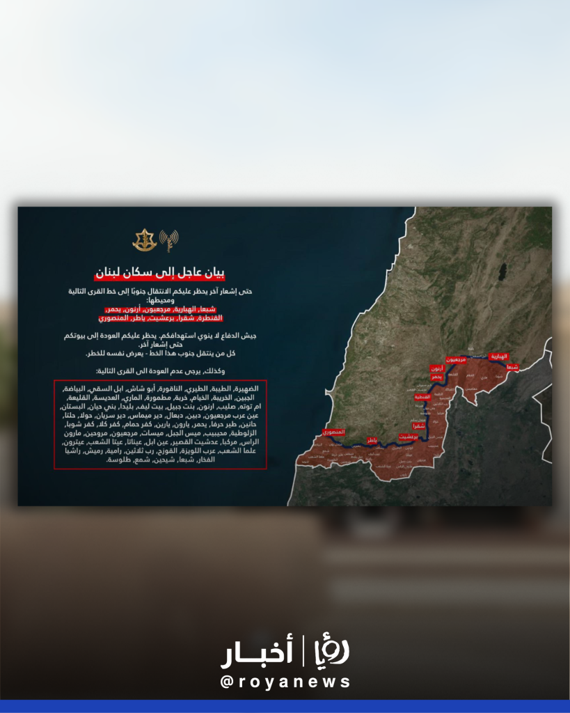 جيش الاحتلال يحذر سكان عشرات القرى في جنوب لبنان من العودة إلى منازلهم.. خارطة