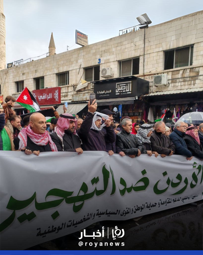وشدد المشاركون على أن الشعب الأردني، بقيادته الهاشمية، لن يقبل بأي مشاريع تهدف إلى تصفية القضية الفلسطينية، مؤكدين وقوفهم صفا واحدا مع الشعب الفلسطيني في مواجهة التهجير والعدوان.