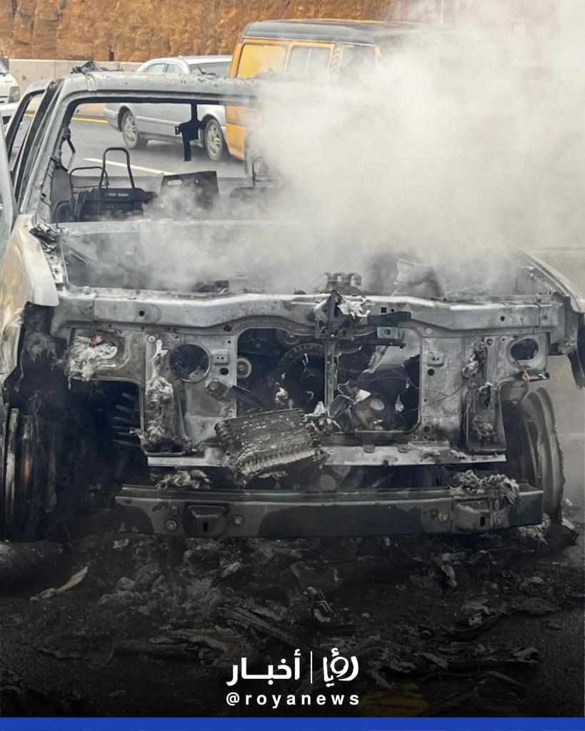 وأشار مراسل رؤيا الى أن المركبة المحرتقة كانت تحمل لوحة أرقام دولة عربية.