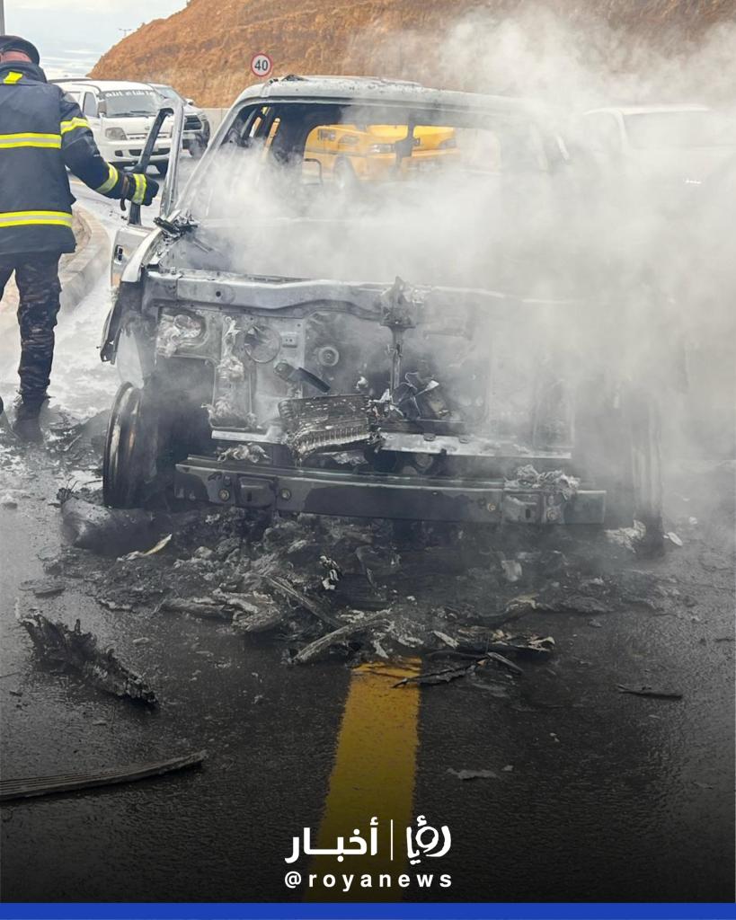 مراسل رؤيا: احتراق مركبة على طريق العارضة دير علا في البلقاء دون وقوع إصابات - فيديو وصور