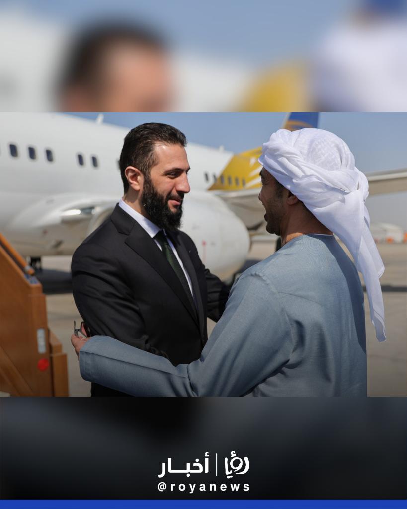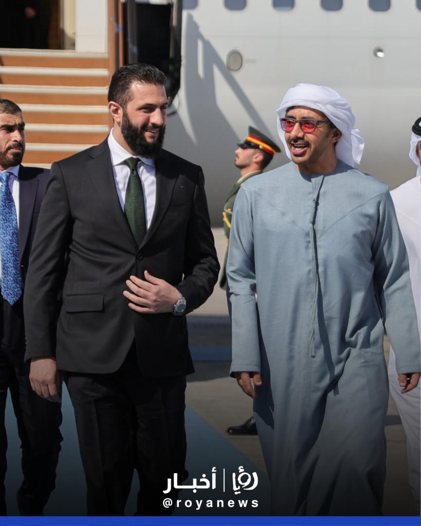 قالت وكالة الأنباء السورية سانا أن الرئيس السوري أحمد الشرع وصل والوفد المرافق له إلى مطار البطين في دولة الإمارات العربية المتحدة، حيث كان في استقباله سمو الشيخ عبد الله بن زايد آل نهيان وزير خارجية دولة الإمارات.
