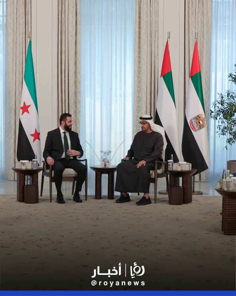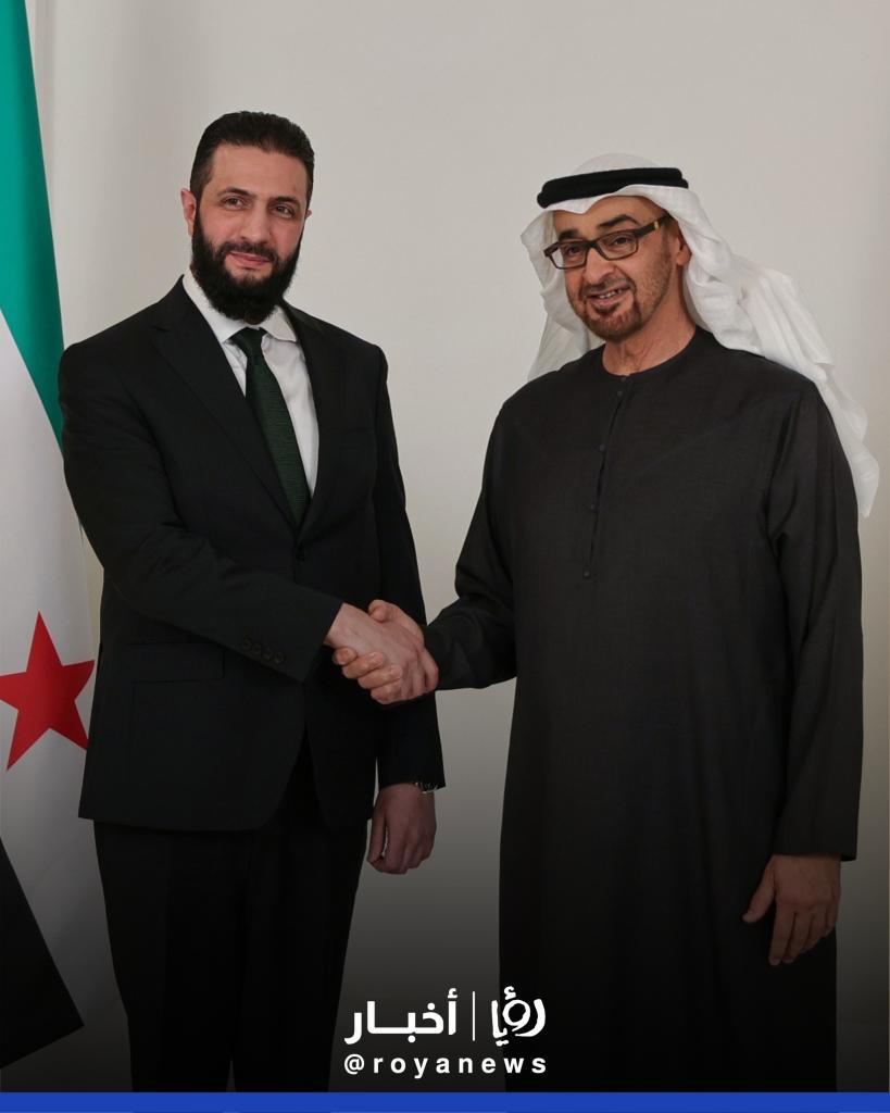 وفي السياق استقبل رئيس دولة الإمارات العربية المتحدة سمو الشيخ محمد بن زايد آل نهيان رئيس الجمهورية العربية السورية السيد أحمد الشرع والوفد المرافق له في قصر الشاطئ بأبو ظبي.