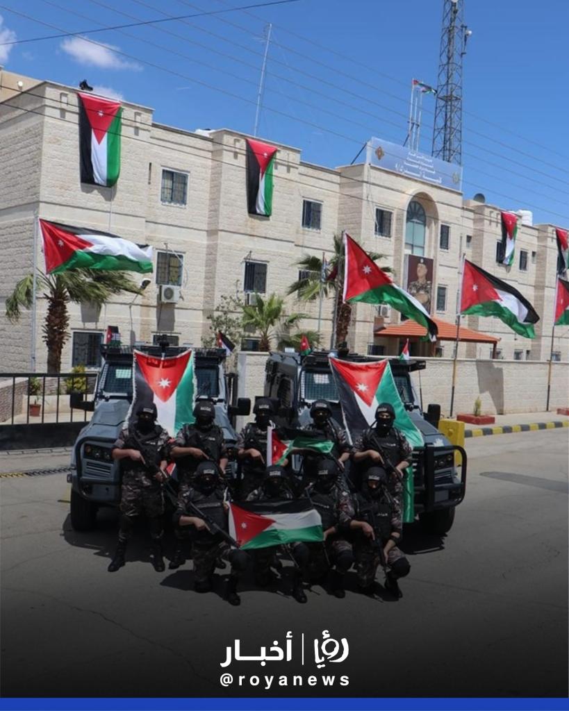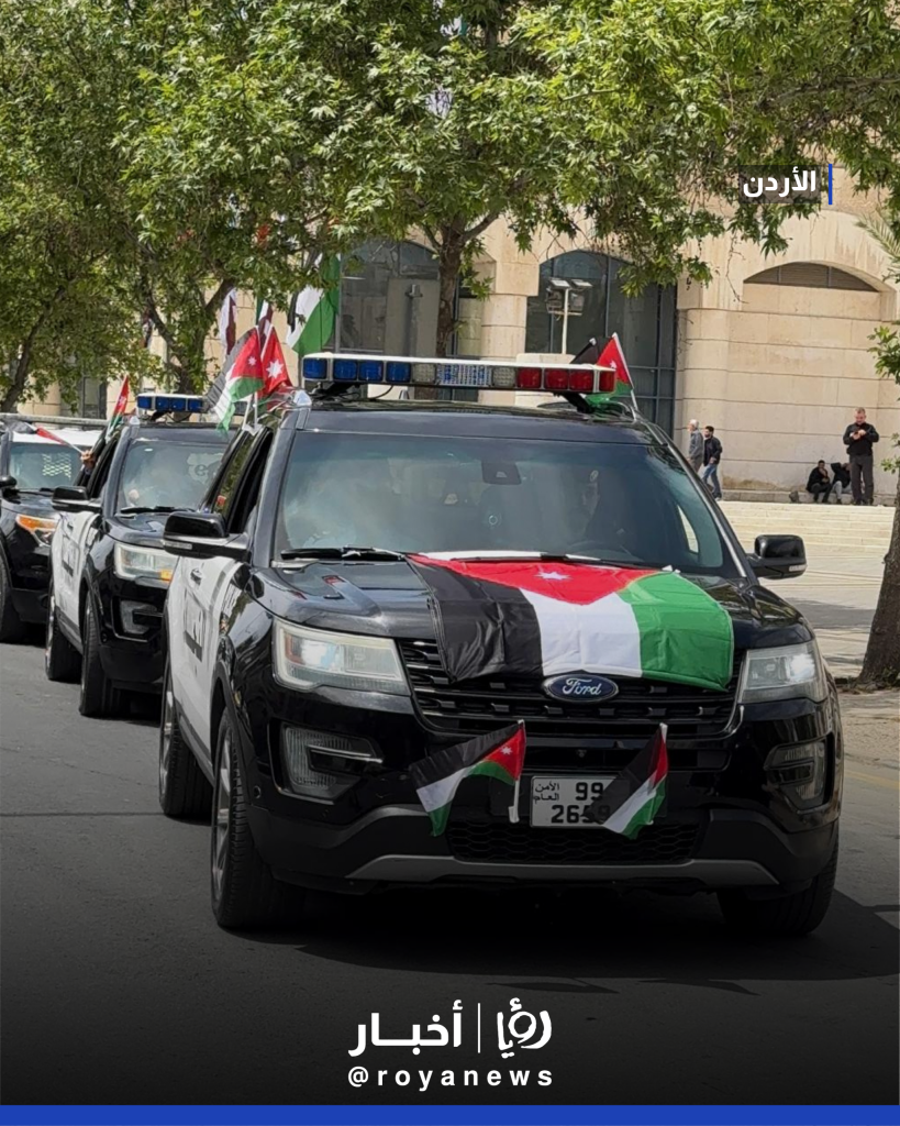 نشامى الأمن العام يوزعون الأعلام على السيارات في الأردن