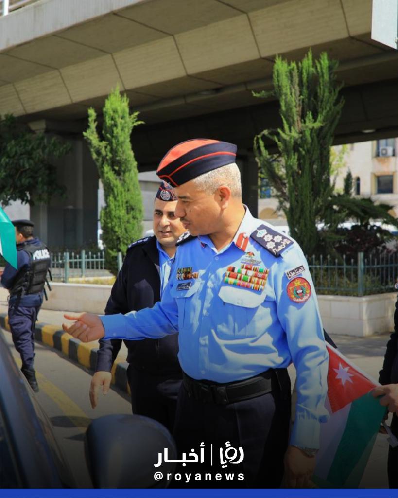 قام كبار ضباط الأمن العام برتبة عميد بتوزيع الأعلام الأردنية على السيارات في مختلف مناطق المملكة.