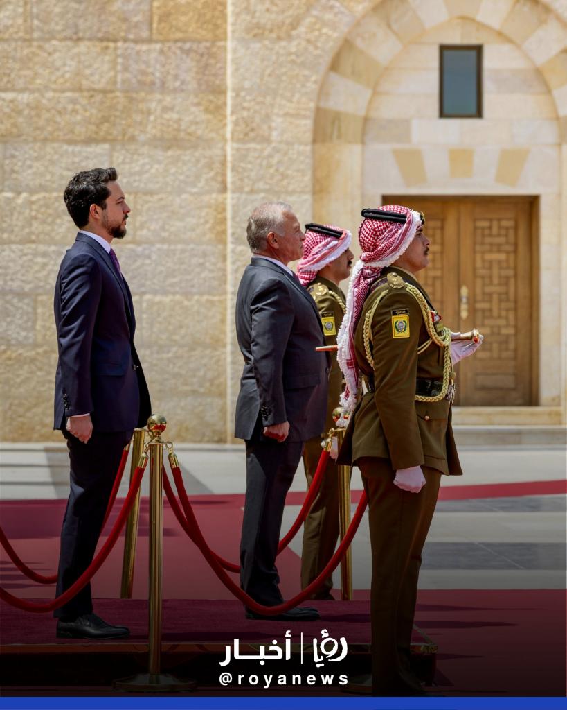 ولدى وصول جلالته إلى باحة قصر الحسينية، كان في استقباله سمو الأمير الحسين بن عبدالله الثاني ولي العهد، وعدد من أصحاب السمو الأمراء، بحضور عدد من رؤساء السلطات، وكبار المسؤولين المدنيين والعسكريين.