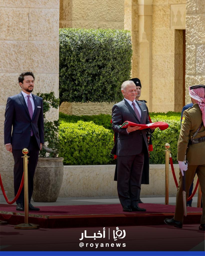 شهد جلالة الملك عبدالله الثاني في قصر الحسينية، اليوم الأربعاء، مراسم رفع العلم، بمناسبة اليوم الوطني للعلم الأردني، التي تصادف في السادس عشر من شهر نيسان من كل عام.