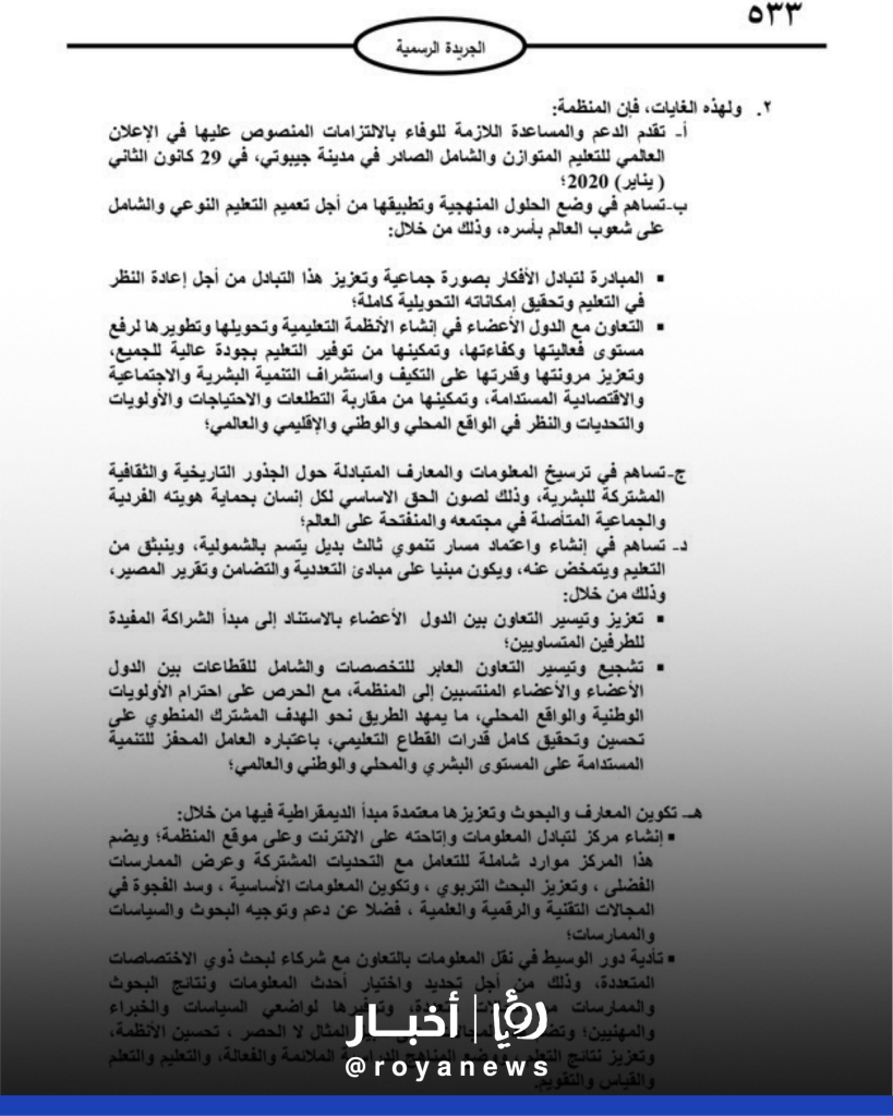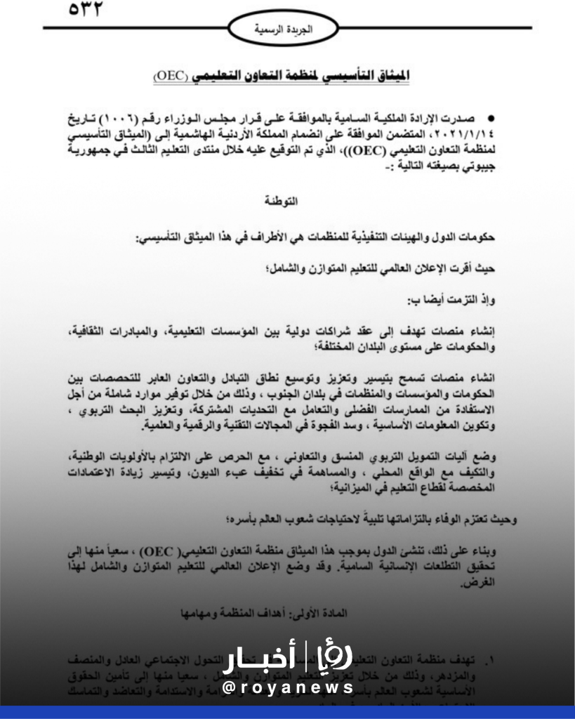 إرادة ملكية سامية بالموافقة على انسحاب الأردن من منظمة التعاون الجنوبي