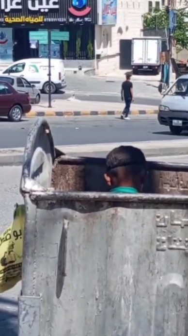 وصل "رؤيا" مقطع فيديو لأحد الأطفال وهو يقوم بجمع الطعام والملابس من داخل إحدى "حاويات" النفايات في الأردن.