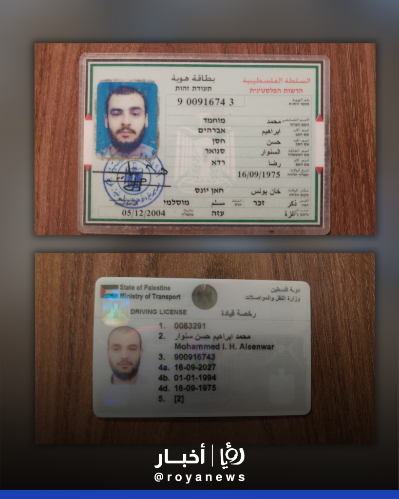 جيش الاحتلال ينشر هويات شخصية على انها للسنوار وصبانة