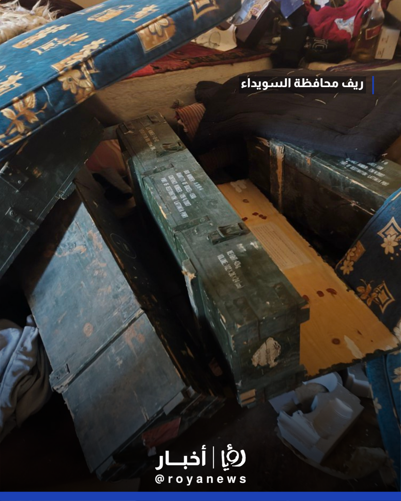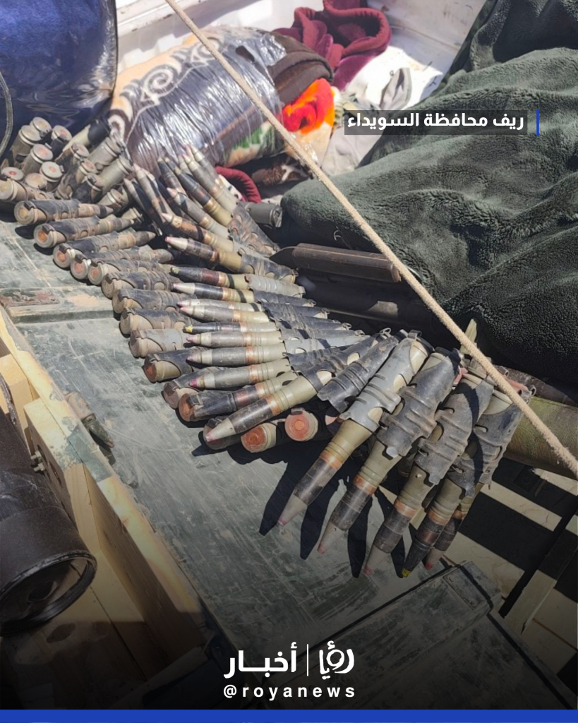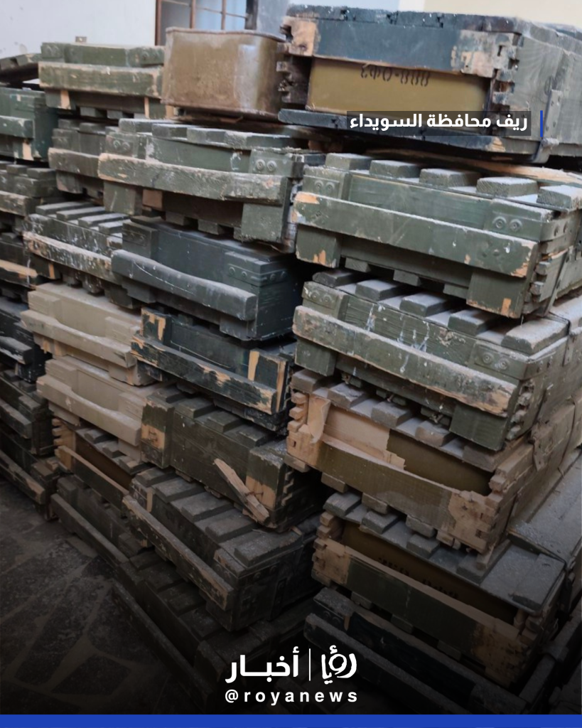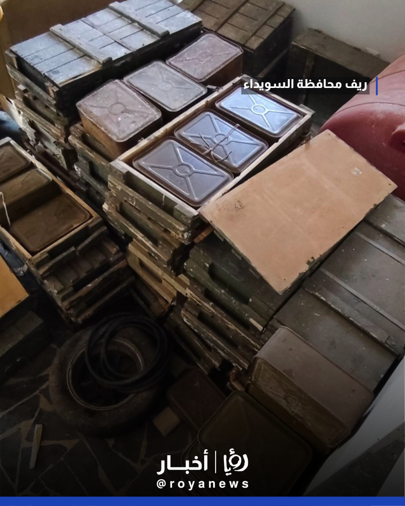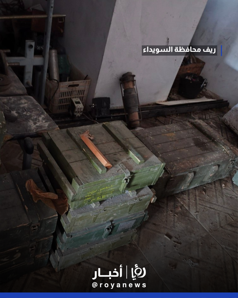 أعلنت وزارة الداخلية السورية العثور على عدد من المستودعات التي تحتوي على أسلحة متنوعة، بالإضافة إلى قذائف وذخائر، في عدة قرى بمنطقة ريف محافظة السويداء.