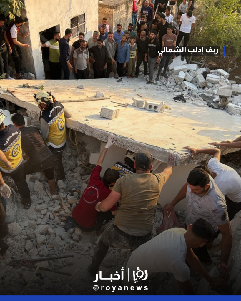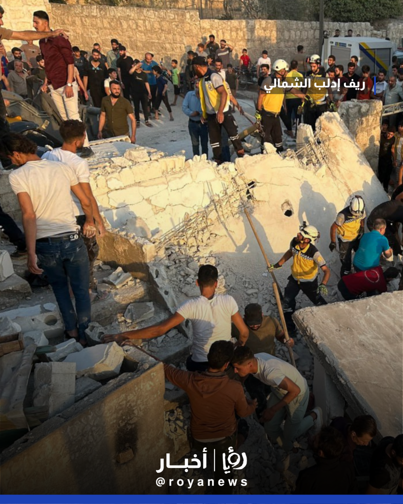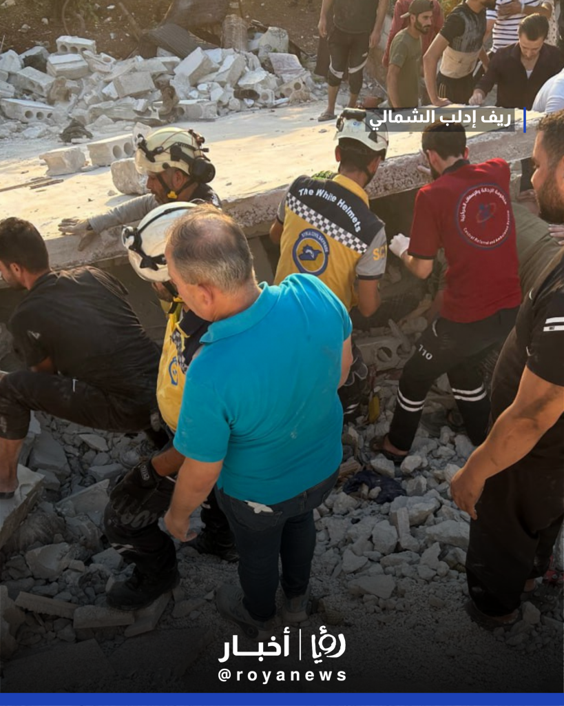 21:17 2025-07-25|- الدفاع المدني السوري: حصيلة ضحايا انفجار في بلدة ترمانين ترتفع إلى ثلاثة والبحث مستمر عن عالقين