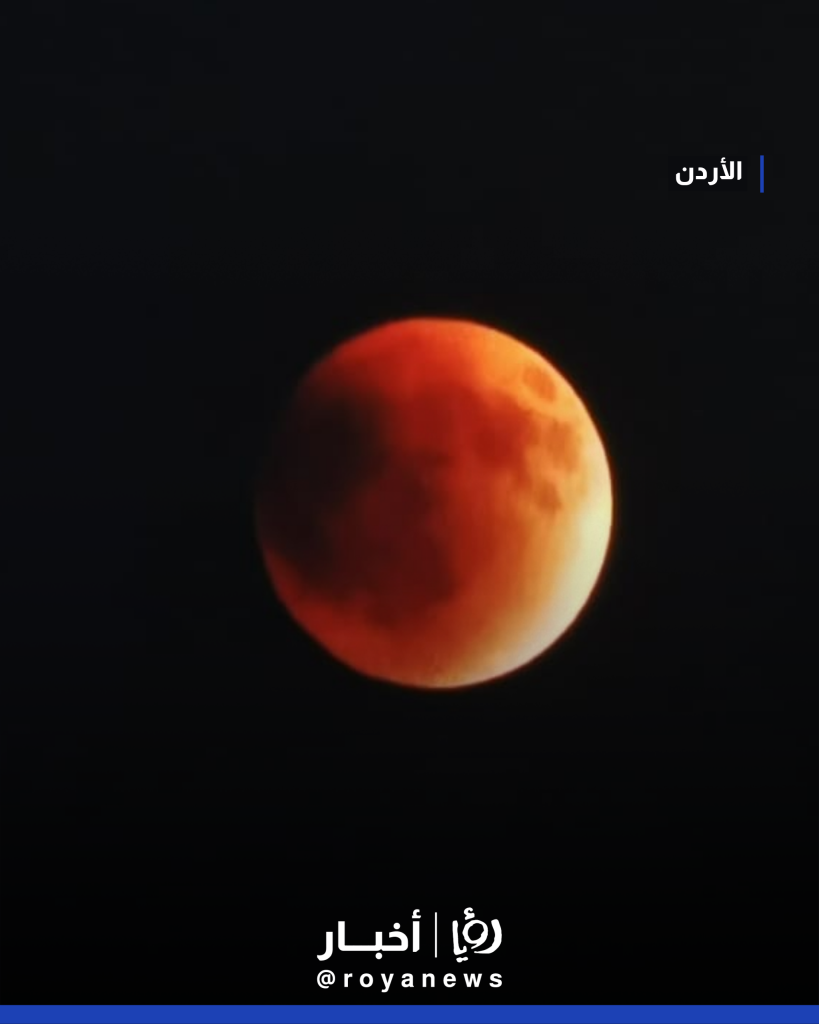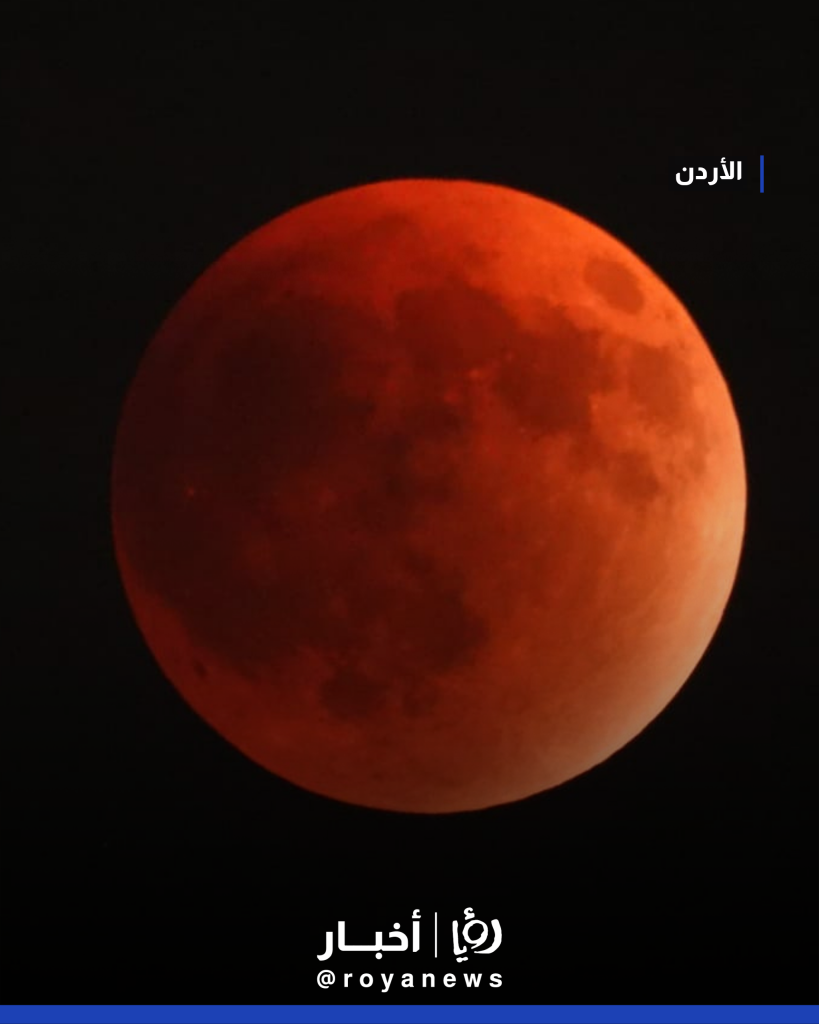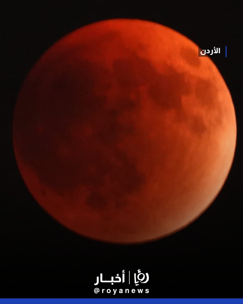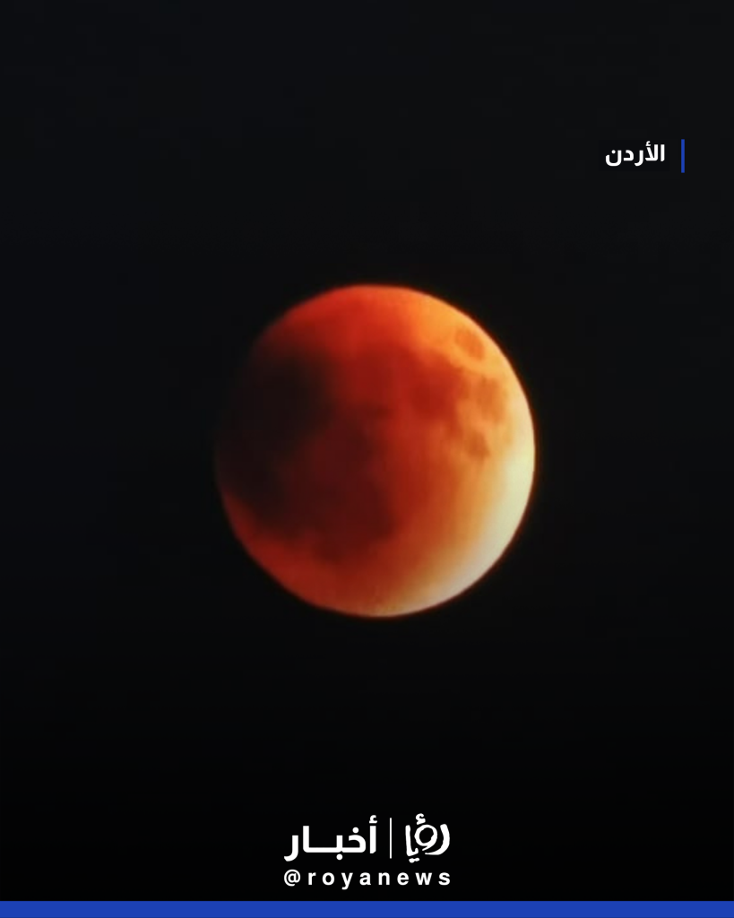 22:59 2025-09-07|شهدت سماء الأردن، مساء الأحد، ظاهرة الخسوف الكلي للقمر، في حدث فلكي استثنائي يعد، بحسب الجمعية الفلكية الأردنية، الأطول من نوعه خلال السنوات الأخيرة، حيث من المتوقع أن يستمر لحوالي 5 ساعات متواصلة.