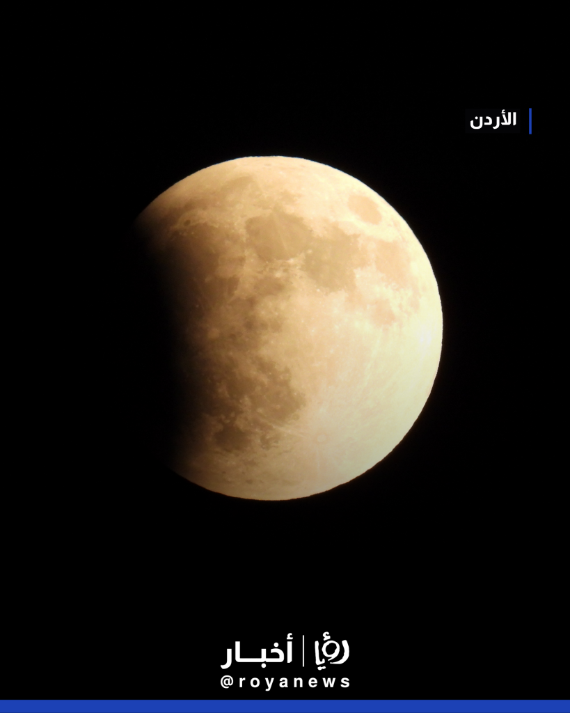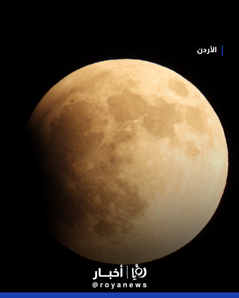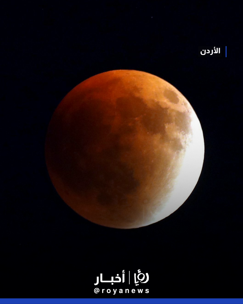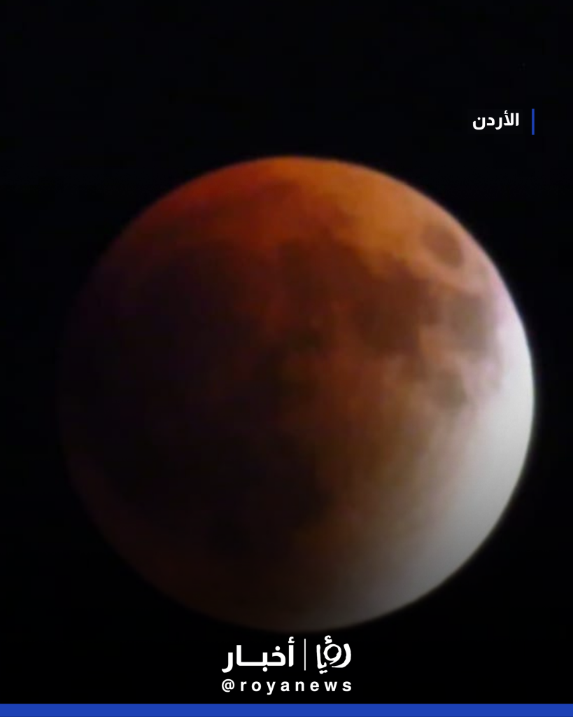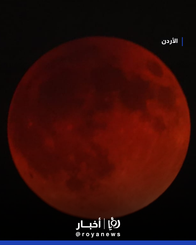 22:59 2025-09-07|شهدت سماء الأردن، مساء الأحد، ظاهرة الخسوف الكلي للقمر، في حدث فلكي استثنائي يعد، بحسب الجمعية الفلكية الأردنية، الأطول من نوعه خلال السنوات الأخيرة، حيث من المتوقع أن يستمر لحوالي 5 ساعات متواصلة.