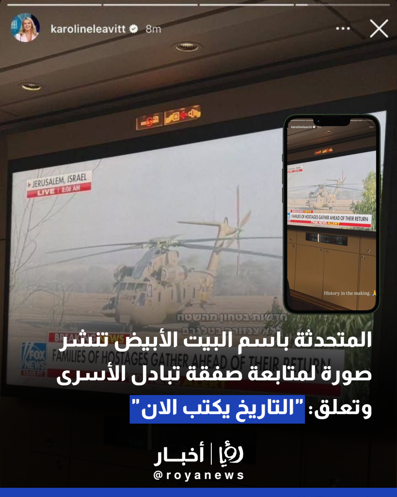 المتحدثة باسم البيت الأبيض تنشر صورة لمتابعة صفقة تبادل الأسرى وتعلق: "التاريخ يكتب الان"