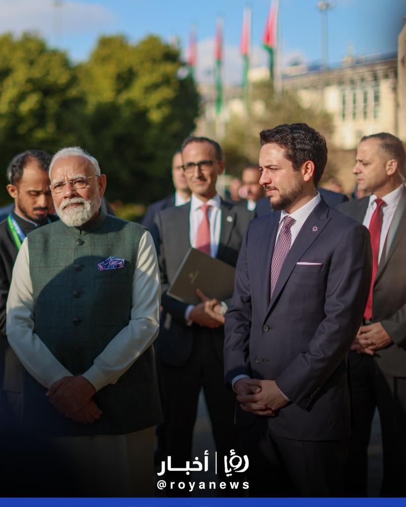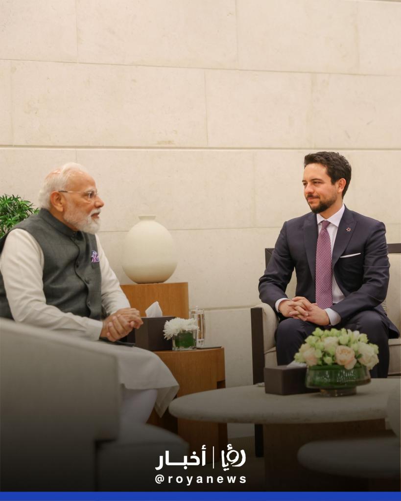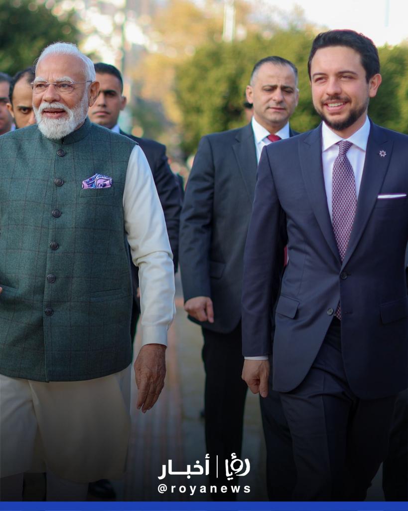 اصطحب سمو الأمير الحسين بن عبدالله الثاني ولي العهد، الثلاثاء، رئيس الوزراء الهندي نارندرا مودي، في زيارة إلى متحف الأردن، الذي يوثق قصة حضارات الأردن القديمة ويعرض التراث الثقافي والتاريخي للمملكة.