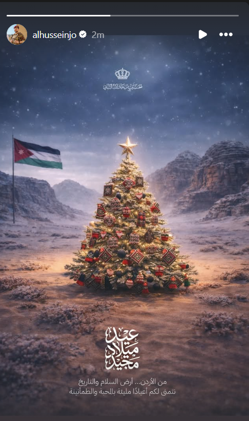 ولي العهد: من الأردن أرض السلام والتاريخ نتمنى لكم أعيادا مليئة بالمحبة والطمأنينة